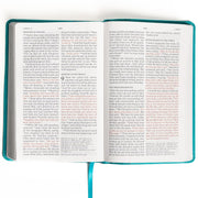 The NASB Large Print Personal Size Reference Bible in Teal LeatherTouch offers a harmonious blend of readability and portability. Its personal size (5.8" x 8.8") makes it ideal for on-the-go use, fitting comfortably into a backpack, tote bag, or purse. Despite its compact profile, it features a generous 11.25-point type size, ensuring ease of reading.
