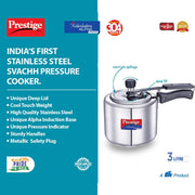 Prestige Svachh Nakshatra Alpha 3L Stainless Steel Pressure Cooker with Deep Lid