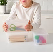 Keeping small toys and desk accessories organised can be a challenge. These 3 colourful and stackable boxes with lids are happy to take care of everything until you or your child needs them again.