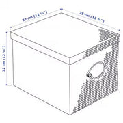 This box is reminiscent of the elegant storage boxes of the past. The size is perfect for things like games and clothes. Woven paper on the outside, and as the icing on the cake – a classic pattern inside.