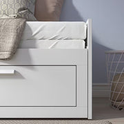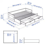 - Bed frame panel/Front frame/Drawer front panel: Particleboard, Paper foil, Plastic edging