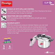 The Prestige 5 Litre Svachh Clip-on Induction Base Pressure Cooker is crafted from high-quality stainless steel, offering a durable and elegant addition to your kitchen. Its outer lid design and innovative clip-on mechanism ensure a secure and convenient cooking experience.