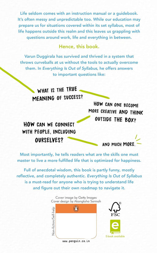 查看完整细节Everything Is Out Of Syllabus by Varun Duggirala is a must-read for navigating life's uncertainties. With a unique perspective from someone who has...