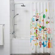 The BOTAREN shower curtain rod is a spring-loaded, adjustable tension rod designed for easy installation without screws or drilling. Its white, powder-coated finish offers a clean look that suits any bathroom decor. The rod extends from 120 cm to 200 cm, making it adaptable to various shower spaces. Designed by David Wahl, it is compatible with standard shower curtain rings and can be installed quickly between two walls.