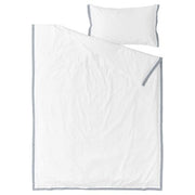 Upgrade your bedding with the IKEA TATELSMYGARE Duvet cover and pillowcase set. Made from 100% GOTS certified organic cotton, enjoy a soft and comfortable sleep. The classic white color and decorative double sham in blue add a timeless touch to your bedroom. Keep your duvet in place with the buttons and enjoy a crisp finish with the envelope closure on the pillowcase.