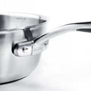 The entire pan, including the base and sides, has one layer of aluminium between two layers of stainless steel. This distributes heat evenly and energy efficiently from several directions and makes it easy to regulate.
