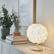 Like a white fluffy cloud of recycled polyester, the sewn shade of this table lamp creates a nice atmosphere with its soft glow. Small, neat and easy to place where you like.