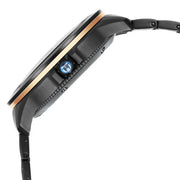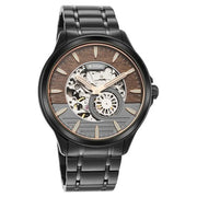 The stainless steel strap, in a sleek black finish, offers a modern, durable look that complements both casual and formal outfits. The watch's brown dial contrasts beautifully with the black strap, adding a unique touch to the overall aesthetic. The mineral glass provides durability and resistance to scratches, making it ideal for everyday wear.
