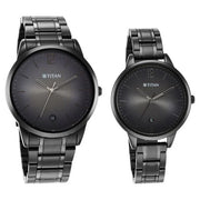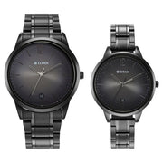 Titan Bandhan Anthracite Dial Analog with Date Stainless Steel Strap Watch for Couple