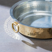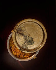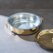 A brass lagaan is a multipurpose vessel used for cooking and storing. The beautiful craftsmanship also makes it perfect for serving dishes in large gatherings. It is the perfect cookware for cooking vegetables and curries, as the tin coating avoids any harm to the food. Cooking in brass helps you preserve the anti-oxidants. The product is designed for practical usage as the rings on the side help hold the hot vessel.