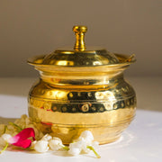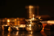A dollop of ghee dripping on the hot paranthas is a site that spreads joy and comfort. P-Tal's Brass Ghee Pot has a hammered design that gives it a vintage look. The beautiful brass ghee pot is a perfect companion to your kitchen setup. It comes with a lid and a spoon, making the storage and usage easy.