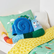 Introduce your child to the playful BRUMMIG Snail Cushion. Its multicoloured design and snail shape bring joy to any bedroom. Filled with recycled polyester, it maintains its shape while providing comfort for your child's head. Perfect for snuggling and resting.