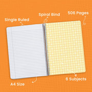 Classmate Pulse 6-Subject Spiral Notebook | Single Line, 500 Pages, A4 Size