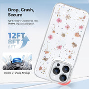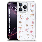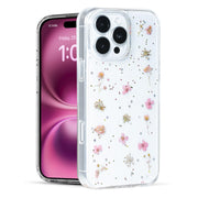 Enflamo Clear Silicone Case Glitter Little Floral Back Cover for iPhone 16 Pro | with Pressed Dry Real Flowers (Pink)