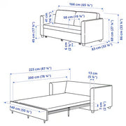 The IKEA PÄRUP 2-seat sofa bed combines a timeless design with practical functionality, making it a perfect addition to any living space. Its sleek lines, piping details on the armrests, and wooden legs create an elegant look. This sofa easily transforms into a spacious bed, making it ideal for both everyday seating and overnight guests. The seat depth, height, and back cushions provide excellent support for a comfortable, upright sitting position. The Vissle fabric cover, made of durable polyester, is removable and machine washable for easy maintenance.