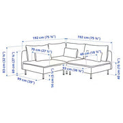 - Width right: 192 cm (75 5/8")