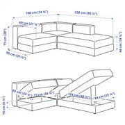 - Built-in storage compartments under the seat and chaise longue for blankets, games, and small items.