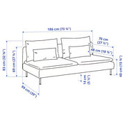 - Frame, 3-seat section: Fibreboard, Polyurethane foam 25 kg/cu.m., Plywood, Solid wood, Steel