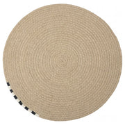 The MÄVINN Place mat is crafted from 100% natural jute, offering a rustic and earthy aesthetic to your dining setting. Its design features hand-embroidered black and white accents, adding a touch of elegance and uniqueness to each piece. The undyed jute material ensures that each mat has its own distinct character, with natural color variations enhancing its charm.