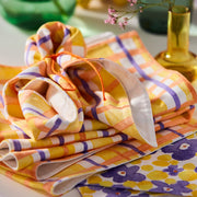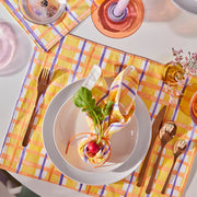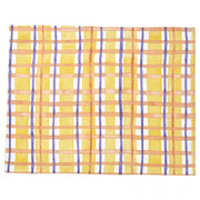 The PILLERSTARR place mat features a vibrant, multicolour checkered pattern, combining shades of blue, orange, and white. Made from 100% cotton fabric, with a minimum of 50% recycled content, it offers both sustainability and style. This rectangular placemat measures 45x35 cm (18x14") and is designed to protect your table surface from spills and stains while adding a pop of colour to your dining setting.