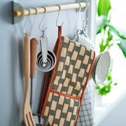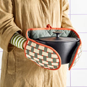 The RINNIG oven mitt with a light beige background and grey-green and brown-red pattern adds a stylish, decorative touch to your kitchen while providing reliable heat protection. Made from durable, heat-resistant materials with a padded inner lining, it ensures safe handling of hot pots, pans, and trays. The mitt-style design covers the hand and wrist for maximum protection, and the hanging loop makes storage simple. Combining functionality with cheerful, patterned design, this oven mitt is both practical and visually appealing for everyday kitchen use.