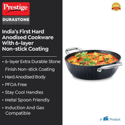 Prestige Durastone Hard Anodised 6 Layer Non-Stick Kadai with Glass Lid, (28 cm, 3.8 Litre) (Black)